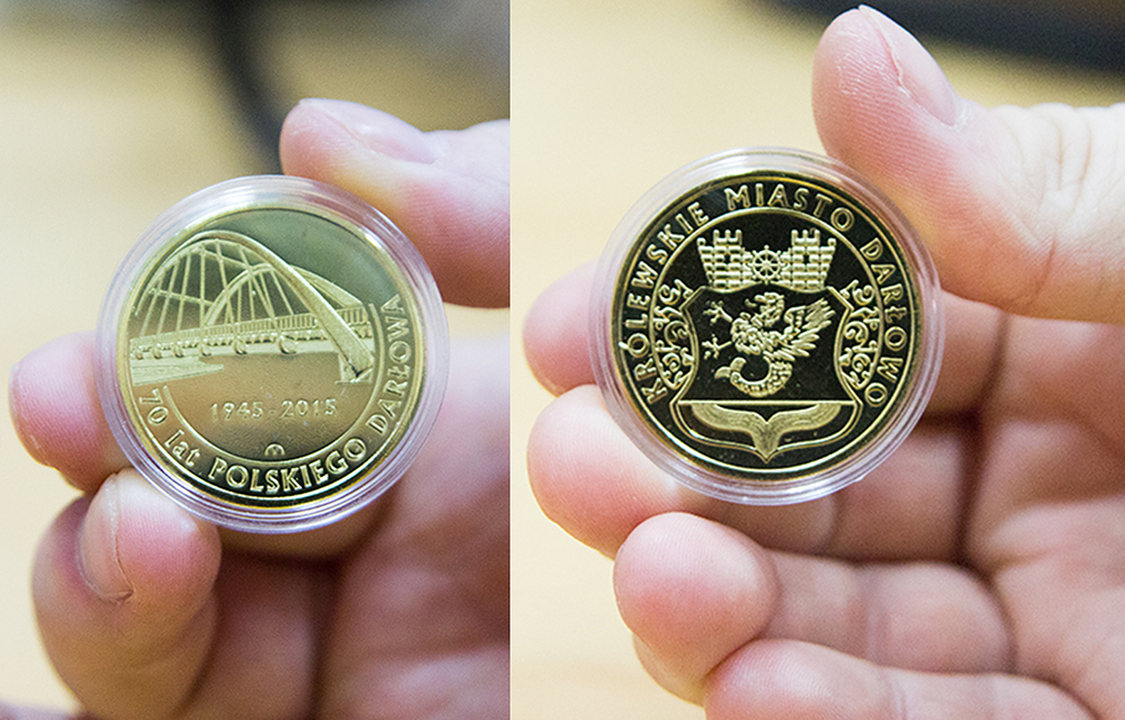Rok 2015 jest rokiem jubileuszowym. W siedemdziesiątą rocznicę przyłączenia Darłowa do Polski Miasto Darłowo wydało, kolejną złotą monetę pamiątkową, która tym samym powiększa kolekcje monet okolicznościowych z serii „symbole miasta". Numizmat promujący 70 Lat Polskiego Darłowa na awersie przedstawia oddany do użytku w 2014 roku najnowszy most Darłowa. Most ten symbolizuje dokonania mieszkańców Darłowa i przemiany jakie zachodziły w mieście nad Wieprzą a także jest wyrazem łączenia tradycji z teraźniejszością. Na awersie widnieje wypukły napis: „70 Lat Polskiego Darłowa: 1945-2015". Rewers, podobnie jak wcześniejsze dwie monety przedstawia herb Królewskiego Miasta Darłowa.