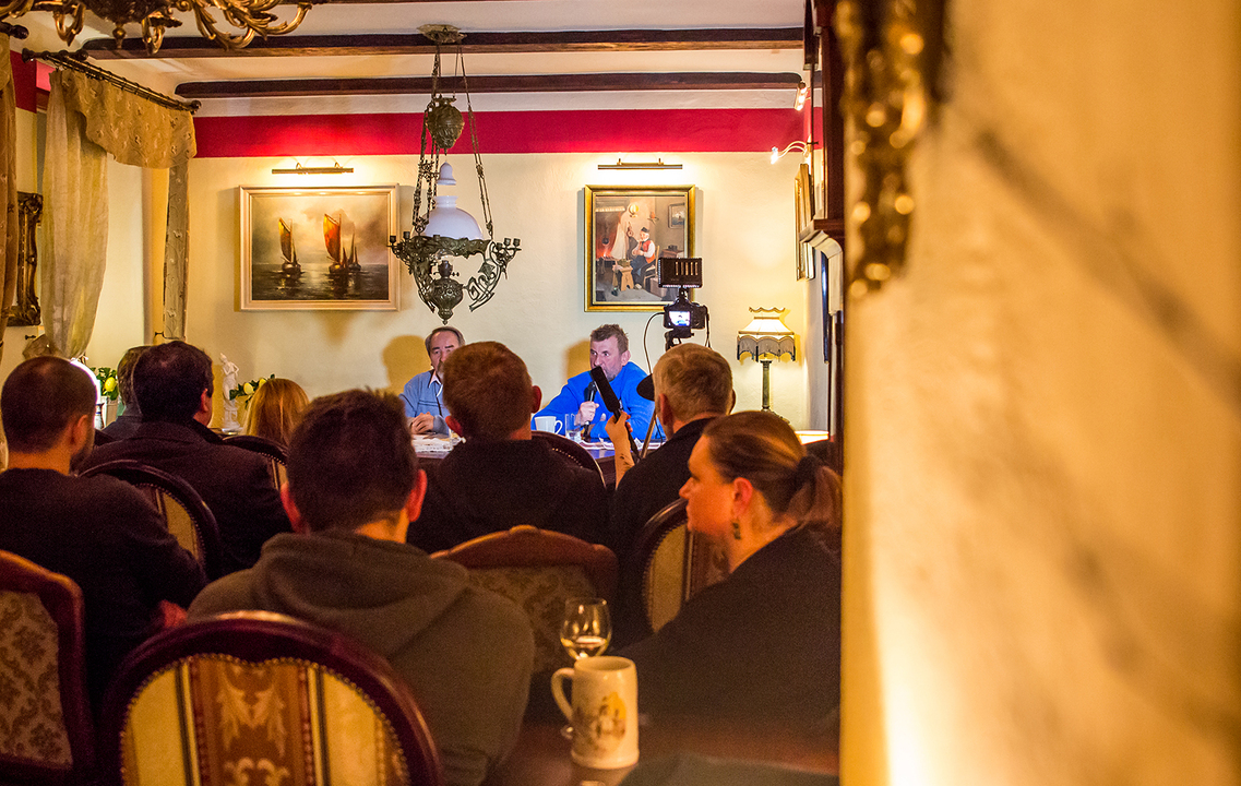 Kameralne, otwarte spotkanie zaplanowano w Zamkowym, gdzie każdy zainteresowany mógł zadać podróżnikowi pytanie. Kamiński udzielił także krótkiego wywiadu dla darłowskiej telewizji siedemdziesiątsześć150, w którym między innymi wyznał, że Darłowo to ważny punkt na szlaku Św. Jakuba  gdzie spotkał się z miłym przyjęciem i gościnnością - wręcz królewską - jak na miasto Króla Eryka przystało. Rozmowę tą opublikujemy już wkrótce.