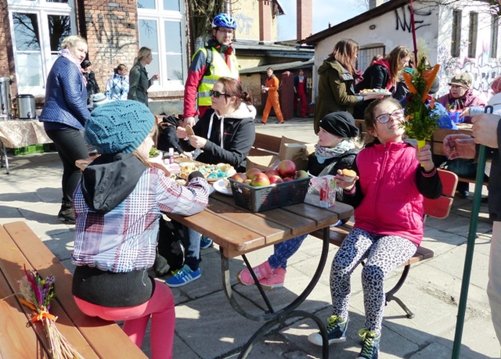 W przeddzień Niedzieli Palmowej 28 marca przez kilka godzin popołudniowych wokół dworca kolejowego wrzało jak w ulu. To kolejna bardzo pożyteczna akcja Darłowskiego Centrum Wolontariatu pod nazwą „Parapetówka na Stacji DCW”, czyli wiosenny happening dla całych rodzin. W spotkaniu przy pięknej pogodzie wzięło udział blisko setka wolontariuszy, turystów rowerowych i mieszkańców Darłowa. Parapetówka była wiosennym porządkowaniem otoczenia nowej siedziby DCW poprzez czyn społeczny. Był to też dzień otwarty, dzięki któremu każdy zainteresowany mieszkaniec Darłowa i regionu miał okazję zobaczyć odrestaurowaną część byłego dworca PKP w Darłowie, poznać wolontariuszy, kierunki ich działań, osiągnięcia i pakiet aktualnie realizowanych projektów. Dorota Kuriata – prezes Darłowskiego Centrum Wolontariatu podzieliła licznie przybyłych wolontariuszy na drużyny i przydzieliła im zadania do wykonania. Poszczególne brygady sprzątały, bieliły drzewa, malowały słupki, lampy, kwietniki, donice i pas wzdłuż peronu. Inne kopały ziemię i sadziły bratki, robiły palmy i świąteczne stroiki. Na koniec zajadano pyszne ciasta i smaczne kiełbaski z grilla popijając kawą i herbatą. W ten sposób dworzec nabrał nowego blasku i może już przyjmować regionalny szynobus. To także był znakomity pożyteczny pomysł spędzenia kilku godzin w sposób aktywny.