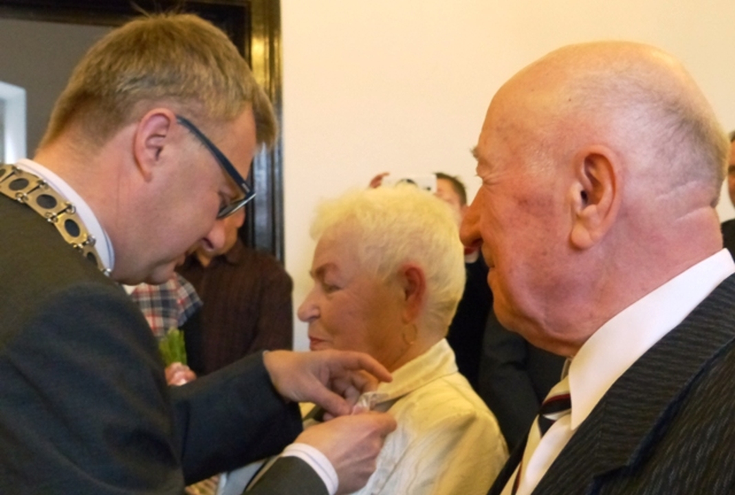 W imieniu Prezydenta RP Bronisława Komorowskiego Arkadiusz Klimowicz burmistrz Darłowa uhonorował Medalami za Długoletnie Pożycie Małżeńskie parę jubilatów z naszego miasta.