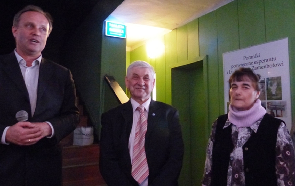 Otwarcia wystawy dokonali prezes Polskiego Stowarzyszenia Europa – Demokracja – Esperanto Edward Kozyra i dyrektor Darłowskiego Ośrodka Kultury im. Leopolda Tyrmanda Arkadiusz Sip. W otwarciu uczestniczyli m.in.: działaczki esperanckie  Halina Borysiewicz, Krystyna Mikołajczak, nauczycielki oraz młodzież szkolna.                                                                                                                                          Twórcą języka esperanto jest Ludwik Zamenhof (1859-1917) pochodzący z rodziny żydowskiej zamieszkałej w Białymstoku. Biegle władał językiem polskim, rosyjskim, niemieckim, francuskim, angielskim, łaciną i greką. W tym czasie Białystok zamieszkiwały cztery grupy narodowościowe – Polacy, Rosjanie, Niemcy i Żydzi. Twierdził, że do nieporozumień między ludźmi dochodzi przez barierę językową.  Dlatego wymyślił język wspólny dla wszystkich. Idea wspólnego języka szybko rozprzestrzeniła sie po całym świecie. Esperanto to międzynarodowy język, opracowany z myślą o ułatwieniu komunikacji między ludźmi tego globu. Ułatwieniu, bo język ten jest kilka razy prostszy do nauczenia od innych języków, którymi mówi dzisiejszy świat, w tym od najbardziej popularnych: angielskiego, francuskiego, hiszpańskiego. Idealny język wspólnotowy dla Unii Europejskiej!  Językiem esperanto porozumiewa sie pond dwa miliony mieszkańców na świecie.                 Prezentowana w Darłowie wystawa pokazywana była m.in. w Senacie RP oraz w wielu miastach Polski. Na wystawie można obejrzeć m.in. informacje i zdjęcia o twórcy języka, podręczniki i słowniki esperanto, kolejne kongresy tego języka czy książki z przekładami dzieł literackich. Można także zapoznać się z historią i współczesnością esperanto, jego gramatyką czy z polskimi autorami tworzącymi w esperanto. Na esperanto przełożono m.in. Pana Tadeusza, dzieła Henryka Sienkiewicza, Bolesława Prusa czy Iwana Turgieniewa, Biblię, a ostatnio „Sto lat samotności” Gabriela Garcii Marqueza. W tym języku wydano także książki dla dzieci „Kubusia Puchatka” czy „Muminki”.