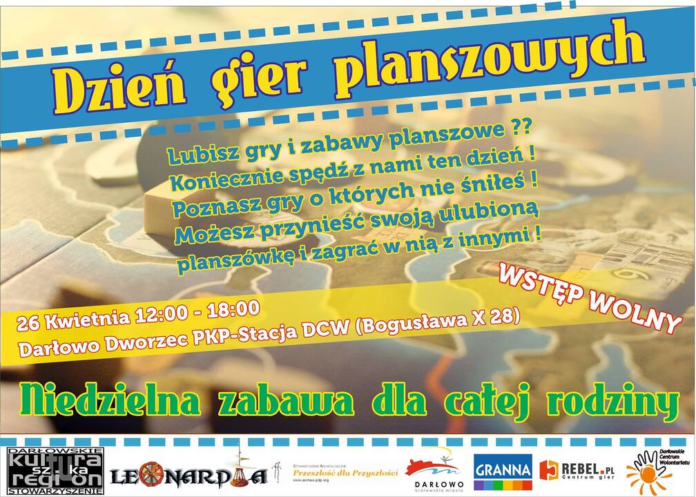 Rodzinnie może być też w niedzielę, 26, kwietnia. Od godziny 12.00 do 18.00 na dworcu PKP w Darłowie w nowej siedzibie wolontariatu, czyli Stacji DCW. Darłowskie Stowarzyszenie Kultura Sztuka Region Leonardia park rozrywki oraz Darłowskie Centrum Wolontariatu proponują nowy cykl spotkań. Dzień gier planszowych to doskonała okazja spotkania się z przyjaciółmi, zagrania w ulubioną grę, poznanie kolejnej albo być może w pierwszej w życiu niesamowitej planszówki. Proponujemy wszystkim mieszkańcom Darłowa i okolic wyjść z domu w niedzielne popołudnie 26 kwietnia.