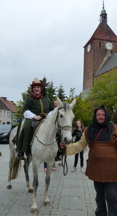 Po powitaniu wszystkich zgromadzonych i przekazaniu przez Arkadiusza Klimowicza – burmistrza Królewskiego Miasta Darłowa klucza do bram miasta królowi Erykowi ruszyła na zamek strojna parada. Na czele konnego pocztu jechał władca Skandynawii, jego rycerze i giermkowie. Grupę rajców prowadzili burmistrzowie Darłowa i Gardelegen. Dalej kroczyli w strojach z epoki: dworzanie, mieszczanie, młodzież szkolna, dzieci i gawiedź. Przed Gościńcem Zamkowym „Ostatniego Wikinga Bałtyku” gospodarze zajazdu powitali kuflem przedniego złocistego płynu o nazwie „Darłowskie Zamkowe” i jadłem z gęsiny. Na dziedzińcu zamkowym cesarz północy przyjął hołdy poddanych i zezwolił na widowisko historyczne, tańce i turniej rycerski. Tę część 703. rocznicy trzeciej lokacji Darłowa przygotowało Bractwo Rycerskie Księcia Bogusława V ze Słupska, a w rolę władcy Skandynawii wcielił się dr Bronisław Nowak naukowy opiekun Bractwa. Dalej świętowano na jarmarku średniowiecznym w byłych ogrodach książęcych, a obecnie należących do Gościńca Zamkowego. W kramach można było nabyć; przednie nalewki, miody, wyroby rękodzielnicze, ozdoby, sukna, ceramikę, antyki, rzeźby i jadło. Na jarmarku ojciec miasta otworzył beczkę złocistego piwa - „Darłowskiego Zamkowego”, którym częstowano zacnych gości i gawiedź. Całe wydarzenie zapewne przejdzie do historii królewskiego grodu i stanie się darłowską tradycją. Organizatorem Dni Darłowa było biuro promocji miasta na czele z Magdą Burduk i DOK.