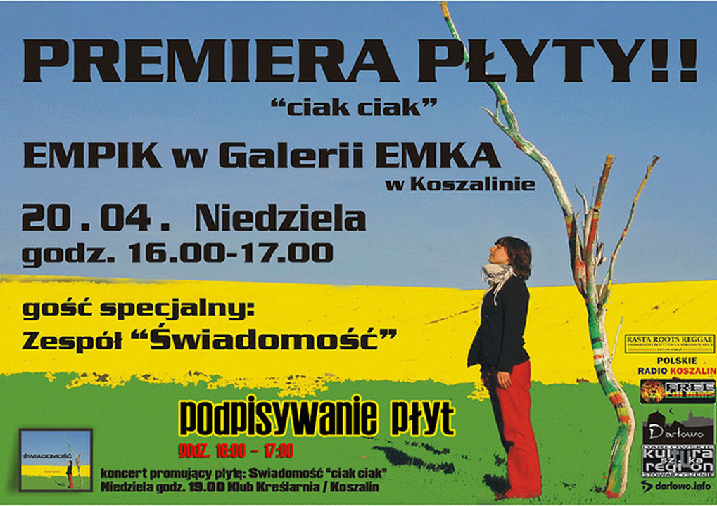 Tego samego dnia w koszalińskim Klubie Kreślarnia, o godz. 19:00 odbędzie się koncert promujący debiutancki krążek Świadomości „CIAK CIAK”
