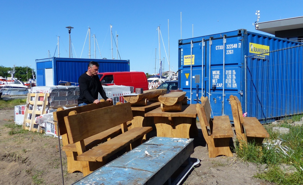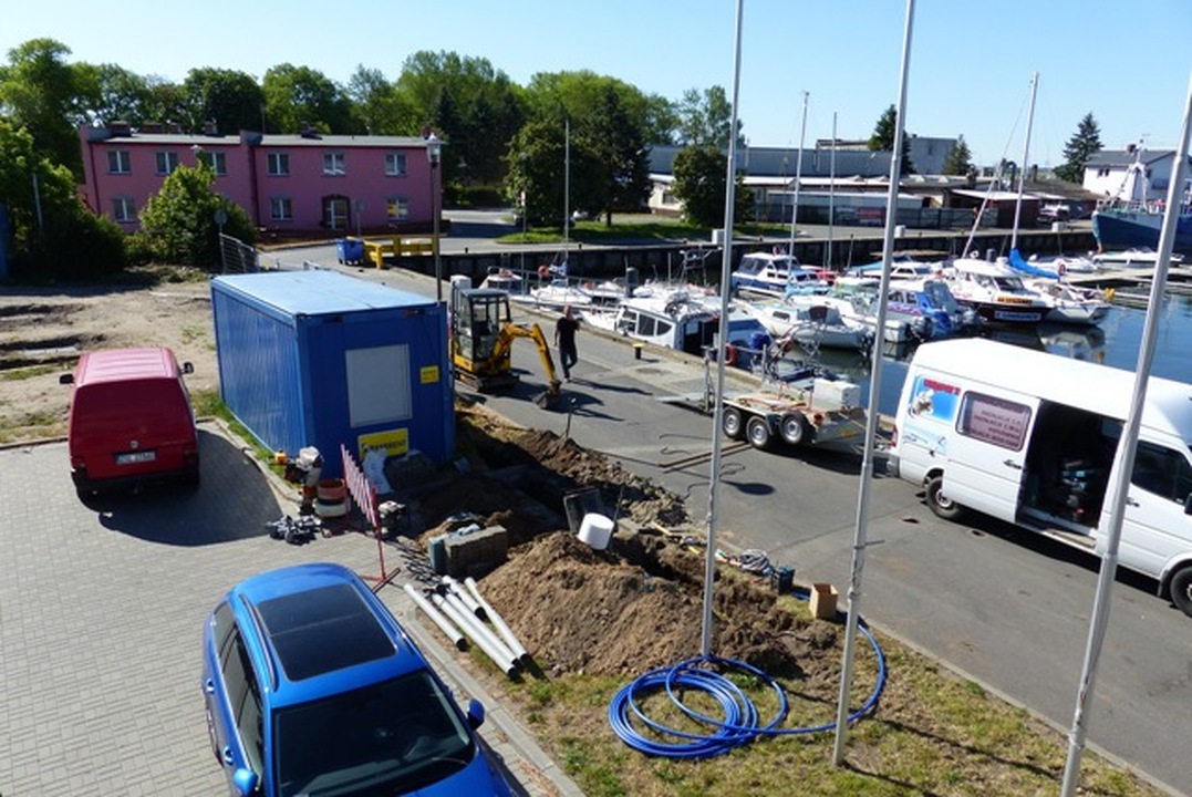 W darłowskim porcie jachtowym budują dla żeglarzy wiatę z grillem i wędzarnią