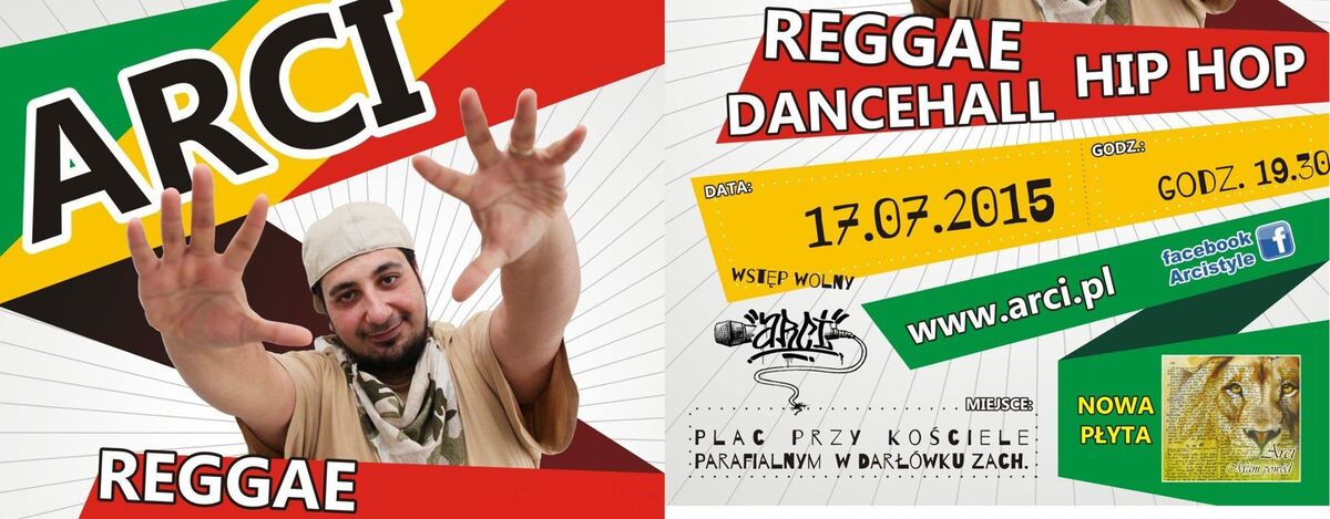 Franciszkanie z Darłówka oraz Darłowski Ośrodek Kultury im. Leopolda Tyrmanda zapraszają na koncert muzyka pochodzącego z Armenii Artaszesa Barojan znanego, jako ARCI. Muzyka Arci'ego to połączenie hip-hop'u z melodyjnym reggae z wyraźnym przekazem chrześcijańskiej miłości. Tego dnia zapraszamy wszystkich gości i parafian na koncert, który odbędzie się o godzinie 19:30 na placu przed kościołem. Wstęp wolny. 17 lipca - Darłówko Zachodnie.
