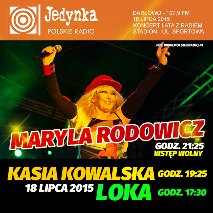 Już dziś - 18 lipca zapraszamy na muzyczny koncert Lata z Radiem, w ramach którego na scenie wystąpią: Loka, Kasia Kowalska i gwiazda wieczoru, niepodważalna królowa polskiej piosenki - Maryla Rodowicz. Impreza rozpocznie się o godzinie 16:00 i potrwa do 23:00. W programie szereg atrakcji dla dzieci i całych rodzin, gry, zabawy, konkursy, pokaz iluzji w wykonaniu Maćka Pola. Ponadto wydarzenia muzyczne. Dla darłowskiej publiczności wystąpią: Loka (godz. 17:30), następnie Kasia Kowalska (godz. 19:25) a gwiazdą wieczoru będzie Maryla Rodowicz (godz. 21:25). Wisienką na torcie będzie pokaz sztucznych ogni, który przewidziany został na godzinę 22:40.