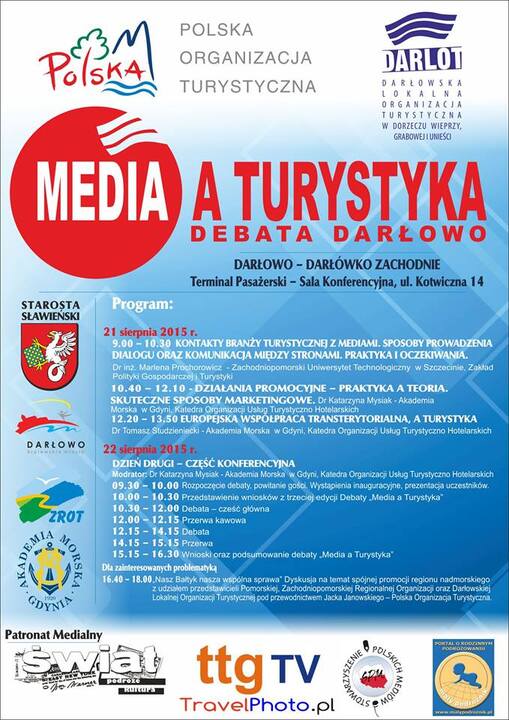 Darłowska Lokalna Organizacja Turystyczna w Dorzeczu Wieprzy Grabowej i Unieści ma przyjemność zaprosić na Ogólnopolską Debatę Media a Turystyka, która odbędzie się w Darłowie w dniach 21-22 sierpnia 2015.