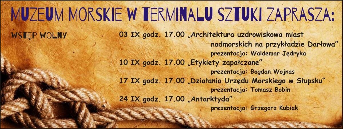 W ubiegły piątek w Terminalu Sztuki w Darłówku Zachodnim zainicjowano działalność nowego, darłowskiego Muzeum Morskiego. Czynne jest ono codziennie w godzinach 10:00 - 18:00, w weekendy do 19:00 (do końca września). Bilety: N- 5 zł, U - 3 zł. Polecamy uwadze.