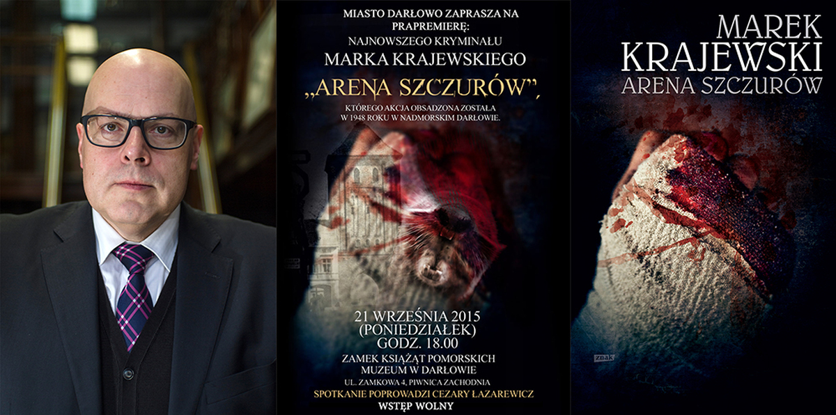 Marek Krajewski przyjedzie do Darłowa promować „Arenę Szczurów". Kiedy? Na dwa dni przed jej oficjalną premierą, która została zaplanowana na 23 września 2015. Prapremiera książki odbędzie się nie gdzie indziej jak w miejscu, w którym toczy się jej akcja - w nadmorskim Darłowie. Z tej okazji, już w najbliższy poniedziałek - 21 września - Marek Krajewski spotka się z dziennikarzami podczas konferencji prasowej. Zostanie on także poddany badaniu przy użyciu wariografu, które zostanie przeprowadzone przez niezależnego eksperta psychofizjologicznych badań poligraficznych przy użyciu tzw. wykrywacza kłamstw. Następnie przedstawiciele mediów odbędą spacer z Markiem Krajewskim po Darłowie śladami Edwarda Popielskiego natomiast o godzinie 18:00 Marek Krajewski spotka się z czytelnikami. Zapraszamy mieszkańców Darłowa, turystów, wielbicieli i fanów twórczości Marka Krajewskiego do udziału w tym spotkaniu. Odbędzie się ono w Zamku Książąt Pomorskich - Muzeum w Darłowie w Piwnicy Zachodniej. Podczas wydarzenia będzie istniała możliwość zakupienia książki. Kryminalny wieczór poprowadzi znany dziennikarz pochodzący z Darłowa - Cezary Łazarewicz.