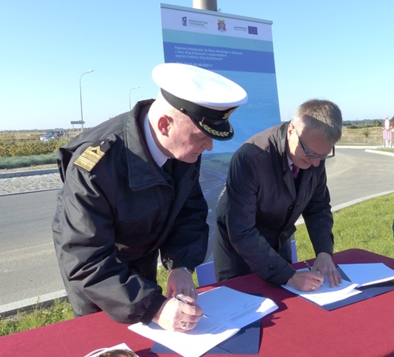 Przy rondzie w pobliżu portu wewnętrznego w Darłowie 12 października 2015 doszło do podpisania porozumienia pomiędzy Miastem Darłowo a Urzędem Morskim w Słupsku w sprawie przygotowania wspólnego wniosku o dofinansowanie projektu dotyczącego ochrony brzegu morskiego na wschód od portu Darłowo, który będzie uwzględniał potrzeby inwestycyjne miasta Darłowa. Miasto opracuje dokumentację projektową uwzględniającą konstrukcje służące ochronie brzegu morskiego i dające możliwość dalszego rozwoju infrastruktury z uwzględnieniem planu zagospodarowania przestrzennego. Takie porozumienie przyczyni się do pozyskania środków z funduszy europejskich na lata 2014-2020 i budowę nadmorskiej promenady na umocnionym brzegu morskim. Porozumienie podpisali: burmistrz Darłowa Arkadiusz Klimowicz i dyrektor Urzędu Morskiego w Słupsku Tomasz Bobin w obecności radnych i służb inwestycyjnych.