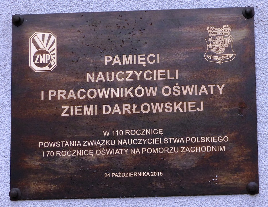 Na placu Marszałka Józefa Piłsudskiego 24 października 2015 z okazji 110 rocznicy utworzenia Związku Nauczycielstwa Polskiego i 70 –lecia Oświaty na Pomorzu Zachodnim odsłonięto tablicę poświęconą pamięci darłowskich nauczycieli szkół i przedszkoli.