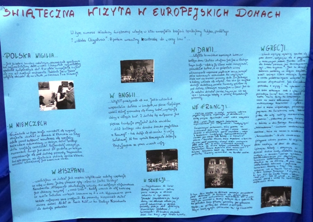 Pokaz miał na celu prezentacje kultury i tradycji Wigilijnych oraz Świąt Bożego Narodzenia, a także sprawdzenie umiejętności uczniów okolicznościowej dekoracji stołów świątecznych. Inicjatorką odbywanego od 15. lat szkolnego „Pokazu Stołów Wigilijnych” jest nauczycielka chemii Anna Kwiatkowska. Przygotowaniem i udekorowaniem swoich stołów wigilijnych zajęli się uczniowie pięciu klas pierwszych. Dzięki pokazowi kolejny raz mieliśmy okazję zobaczyć materialne i duchowe tradycje związane ze Świętami Bożonarodzeniowymi. Wszystkie klasy prezentowały potrawy wigilijne i przepiękne pomysłowe dekoracje. Na ścianach oprócz pięknych dekoracji znajdują się opisy zwyczajów wigilijnych i bożonarodzeniowych różnych narodów skupionych w Unii Europejskiej. Oglądanie i próbowanie potraw uprzyjemniały kolędy i pastorałki w wykonaniu dwóch uroczych gimnazjalistek. Poprzez głosowanie widzów zostanie wybrany najlepiej urządzony stół.