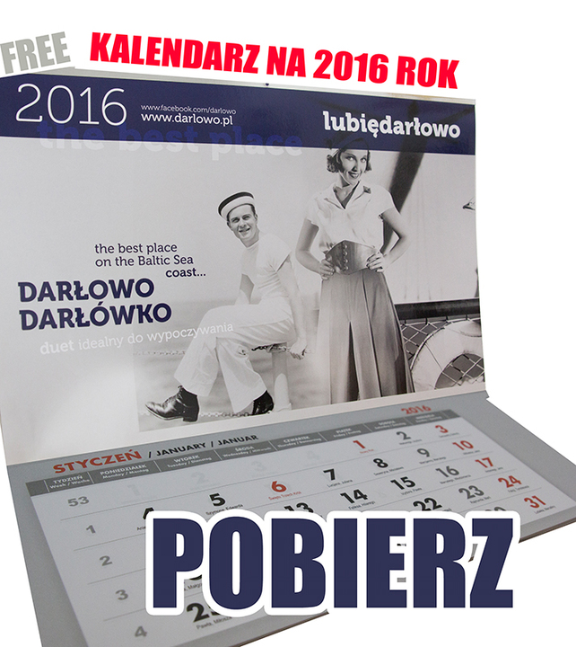 Informujemy, że podczas 2.Wieczoru (przed) Wigilijnego, który odbędzie się we wtorek 22 grudnia br., w sali sportowej Zespołu Szkół im. Stefana Żeromskiego będzie można pobrać bezpłatny kalendarz na 2016 rok. Ma on wymiary 48x68 cm. Projekt górnej winiety zawiera nasze hasło promocyjne - lubiędarłowo! Przyjdź na Wigilię Miejską - 22 grudnia 2015, LO Darłowo - sala sportowa, godz. 17:00, świętuj po darłowsku! Spotkajmy się pod jemiołą!