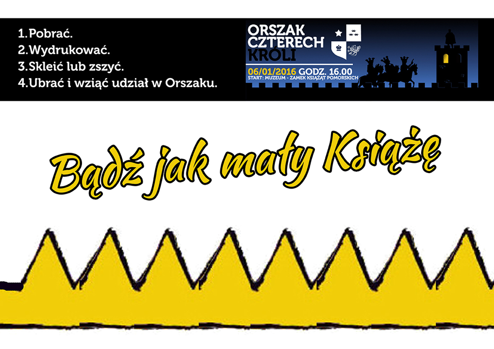 Święto Trzech Króli to święto wyjątkowe.  Nie tylko z uwagi na fakt możliwości podkreślenia naszego królewskiego rodowodu i postaci Króla Eryka ale również ze względu na to, że to święto angażujące społeczność. Tym bardziej zapraszamy do współudziału i współtworzenia tego wydarzenia. Zaangażujcie wnuki, dzieci, rodziców, dziadków, sąsiadów i przyjaciół. Zróbcie sobie korony i dołączcie do królewskiej sagi. Nie zabraknie Rycerzy, Króla Eryka, Baltazara, Melchiora i Kacpra, darłowskich sportowców, reprezentantów darłowskiej kultury, franciszkanów oraz organizacji pozarządowych działających w Darłowie. Spotykamy się na dziedzińcu o godzinie 15:50 - 6 stycznia 2016 roku (tj. środa).