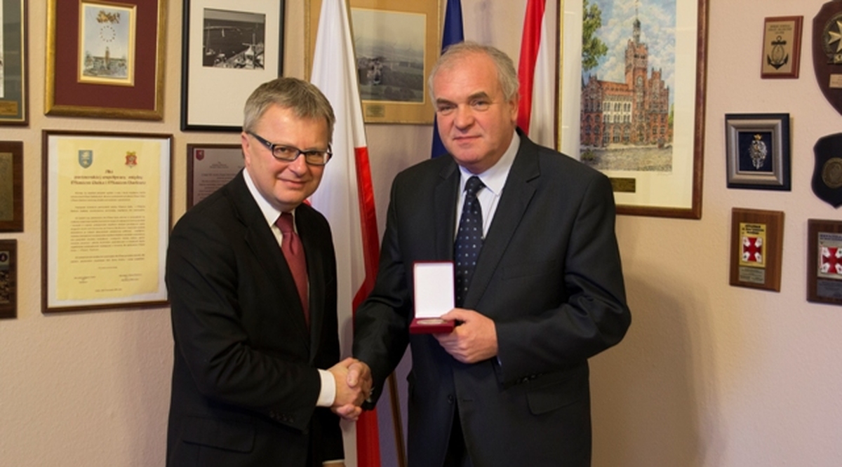 Darłowo odwiedził wczoraj 12 stycznia 2016 nowy zachodniopomorski wojewoda Piotr Jania. Pytał Arkadiusza Klimowicza o miejscowe problemy. Burmistrz miasta prosił wojewodę o cofnięcie decyzji poprzednika zabierającej lekarza z darłowskiej karetki pogotowia od 1 września. Pan wojewoda obiecał przyjrzeć się sprawie. Zadeklarował też objęcie swoim patronatem tegorocznego Zlot Historycznych Pojazdów Wojskowych (prywatnie Piotr Jania jest fanem naszego zlotu i kilka razy był jego uczestnikiem. Burmistrz przekazał miłemu Gościowi pamiątkowy medal wybity z okazji 70-lecia polskiego