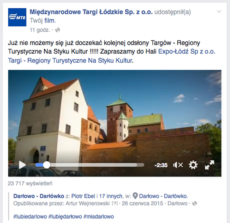 Darłowo promowane na oficjalnym fanpagu Międzynarodowych Targów Łódzkich Sp. z o.o. - Nasza Darłowska Lokalna Organizacja Turystyczna DARLOT - w tym roku jest partnerem regionalnym targów pn. Regiony Turystyczne Na Styku Kultur, które odbędą się w dniach 26-28.02.2016 w Hali EXPO-ŁÓDŹ Sp. z o.o.