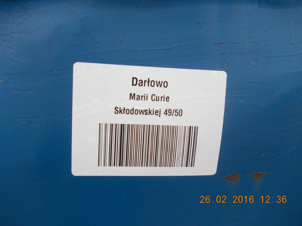Przetarg na odbiór odpadów komunalnych wygrało Miejskie Przedsiębiorstwo Gospodarki Komunalnej Sp. z o.o. w Darłowie, które w ramach realizacji zamówienia zleciło oznakowanie pojemników na odpady zmieszane, czujnikami RFID umożliwiającymi pełną identyfikację: osoby dostarczającej odpady, rodzaju odpadów oraz miejsca odbioru (weryfikacja GPS). W pierwszym etapie oznakowano 2500 pojemników i zlokalizowano 2300 punktów odbioru odpadów komunalnych. Również identyfikacji będą podlegały worki do selektywnej zbiórki odpadów. Będą na nich naklejone kody kreskowe umożliwiające przypisanie każdego worka do punktu odbioru odpadu i uzyskanie informacji tak jak w przypadku odpadów zmieszanych. Dzięki zamontowaniu tzw. chipów stała się możliwa komputerowa identyfikacja odpadów komunalnych. W przyszłości odpady gromadzone w nieoznakowanych pojemnikach nie będą odbierane. Docelowo możliwe będzie dokładne określenie ilości śmieci powstających na nieruchomości oraz jakości prowadzonej selekcji przez mieszkańców Naszego pięknego Miasta.