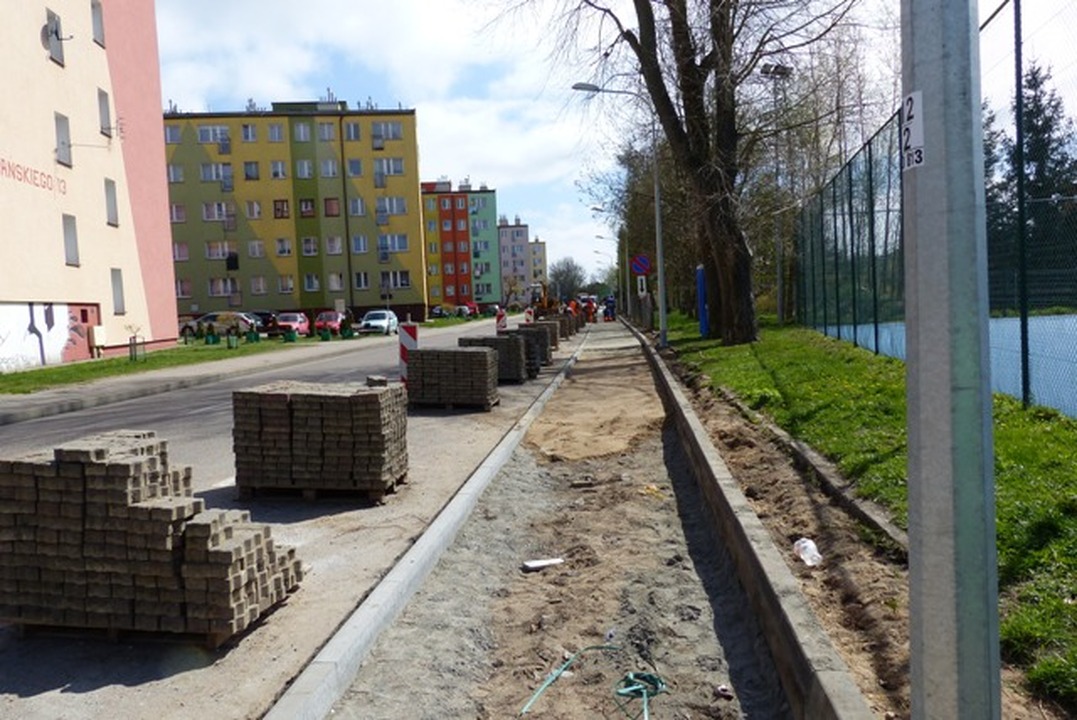 Już w najbliższy poniedziałek 25 kwietnia 2016 zakończone zostaną roboty budowlane przy obniżaniu chodnika wzdłuż drogi powiatowej w Darłowie. Na odcinku ulicy Stanisława Wyspiańskiego naprzeciwko bloków mieszkalnych będzie trzeba jedynie oznakować farbą miejsca postoju i już będzie mogło parkować prawie 60 pojazdów osobowych. Zwiększenie liczby miejsc do parkowania obiecał mieszkańcom osiedla starosta Wojciech Wiśniowski i dotrzymał słowa.