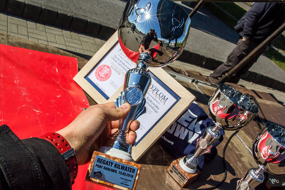 Pomimo przesądnej daty (trzynastego w piątek) wszystko przebiegło zgodnie z planem. Podczas uroczystości nagrody za uczestnictwo w sportowych, wodnych zmaganiach wszystkim załogom wręczył prezes Związku Miast i Gmin Morskich - Andrzej Bojanowski, fundator nagród. Nagrodę specjalną burmistrza Darłowa otrzymała załoga dwukadłubowca w składzie Paweł Krakowiak i Piotr Jaźwiński za morską odwagę i żeglarski zapał w Dziewiczym Rejsie podczas regat Kilwater. Wszystkim żeglarzom życzymy udanego sezonu 2016. Pomyślnych wiatrów i całej naprzód.
