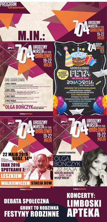 22 maja - Festyn rodzinny: „Darłowiacy Darłowiakom". Godz. 15:00.