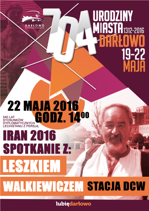540 lat stosunków dyplomatycznych Lechistanu z Persją. To tytuł spotkania, które w ramach Dni Darłowa i jego 704 urodzin odbędzie się w Darłowskim Centrum Wolontariatu (Stacja DCW, ul. Bogusława X 28), o godz. 14:00. Znany lokalny podróżnik i obieżyświat z Darłowa wygłosi prelekcję pokazując ponad 200 starannie wyselekcjonowanych fotografii z tego dość niepopularnego turystycznie zakątka świata.