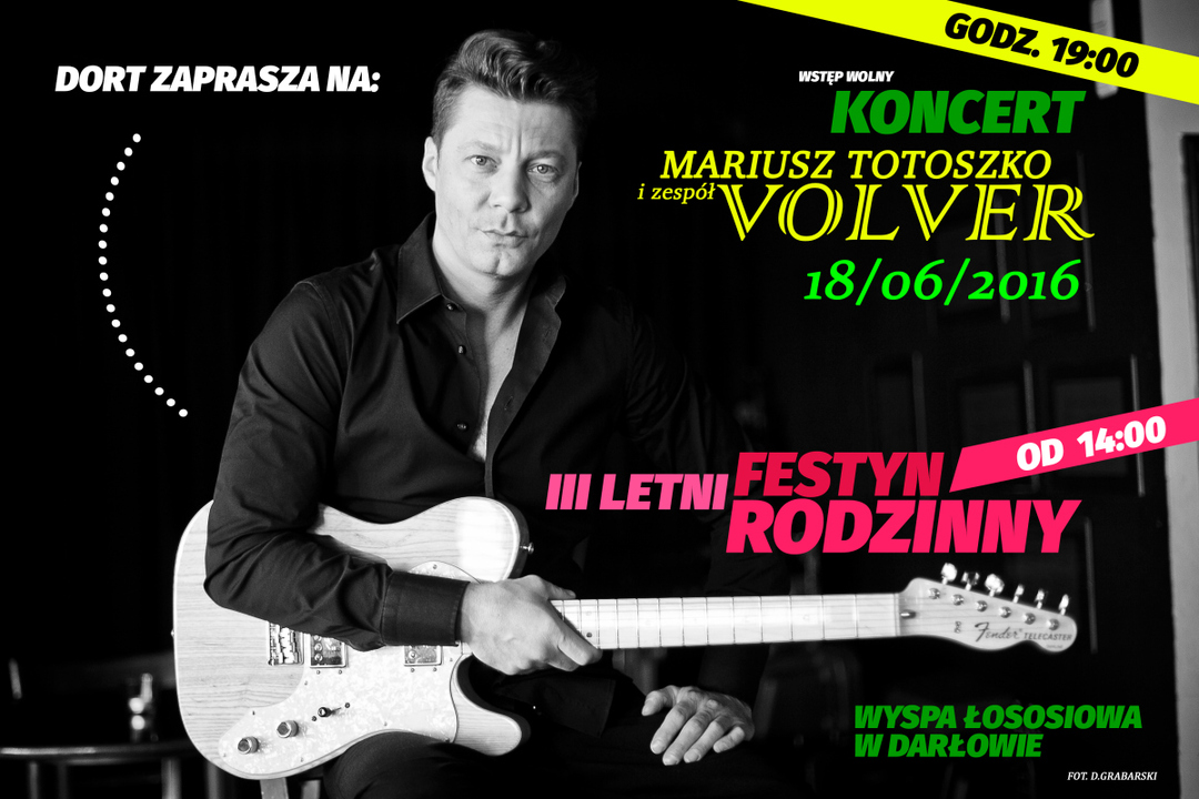 Już 18 czerwca, w sobotę, na Wyspie Łososiowej, Dzienny Ośrodek Rehabilitacyjno - Terapeutyczny w Darłowie i Przyjaciele organizują III Letni Festyn Rodzinny. Gwiazdą tegorocznej edycji imprezy będzie - Mariusz Totoszko wraz z zespołem VOLVER. Start imprezy przewidziano na godzinę 14:00.