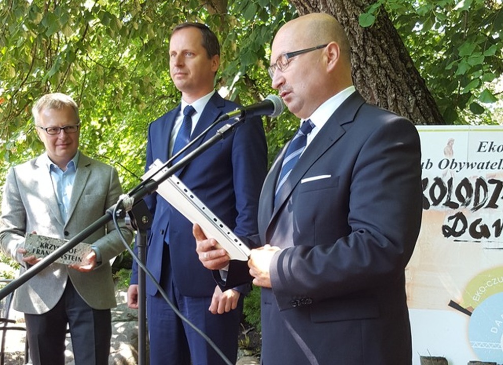 Przybyłych ekologów powitała Jadwiga Gosiewska –od roku 1987 prezes Ekologicznego Komitetu Obywatelskiego „Czuwanie”, lekarz pediatra i długoletni społecznik. Jadwiga Gosiewska przypomniała historię i działalność stowarzyszenia. EKO - Czuwanie powstało, jako wyraz protestu przeciwko budowie elektrowni atomowej w wykonaniu sowieckim nad jeziorem Kopań koło Darłowa, wkrótce po wybuchu elektrowni w Czarnobylu. Klub skutecznie protestował przeciwko budowie E.J. w Polsce poprzez demonstracje uliczne, wiece, spotkania naukowców ze społeczeństwem, gościł i dawał opiekę lekarską oraz udzielał pomocy dzieciom z Czarnobyla. Na uroczystość przybyli m.in.: prof. dr hab. Mariusz- Orion Jędrysek sekretarz stanu w Ministerstwie Środowiska i Główny Geolog Kraju oraz Pełnomocnik Rządu ds. polityki surowcowej, Starosta Powiatu Sławieńskiego Wojciech Wiśniowski, Burmistrz Darłowa Arkadiusz Klimowicz, Burmistrz Sławna Krzysztof Frankenstein. Spotkanie rozpoczęto krótką modlitwą za zmarłych ekologów, którą poprowadził ks. prałat Jan Giratowicz ze Słupska obchodzący 50-lecie kapłaństwa. Kapituła wyróżnienia po przeanalizowaniu zasług położonych dla ochrony środowiska i ekologii wyróżniła następujące osoby: ks. Zbigniew Krawczyk, mgr Ryszard Bruderek, Roman Strzałkowski, Eugeniusz Berliński, dr Krzysztof Frankenstein, Stowarzyszenie na rzecz Mieszkańców Gminy Darłowo, Lidia Bąk, Andrzej Grzybowski, Kazimierz Wojciech Wachowski, prof. dr hab. Mariusz – Orion Jędrysek, Jozef Maciej Roślicki, Wojciech Romaniszyn. Każdorazowo po odczytaniu przez wnioskującego zasług położonych dla ekologii wręczano osobie wyróżnionej marmurową tabliczkę z jego nazwiskiem, którą następnie mocowano na Skale Ekologa. Należy podkreślić, że dwóch spośród wyróżnionych: Berliński Eugeniusz i Strzałkowski Roman są członkami Towarzystwa Przyjaciół Ziemi Darłowskiej, którego również członkiem zbiorowym jest EKOCZUWANIE. Należy podkreślić zasługi dla ekologii, co prawda młodego, ale prężnego Stowarzyszenia na rzecz Mieszkańców Gminy Darłowo. Powstało ono w odpowiedzi na brak zrozumienia potrzeb mieszkańców przez ówczesne władze Gminy Darłowo. W ostatnich latach na obszarze gminy Darłowo postawiono 116 siłowni wiatrowych. Część z nich postawiono bezprawnie w miejscach, których oddziaływają one szkodliwie na mieszkańców i przyrodę. Potwierdził to proces sądowy, jaki w imieniu Stowarzyszenia na rzecz Mieszkańców Gminy Darłowo wytoczyła i wygrała jego prezes Grażyna Marcinkowska Hryckiewicz. Pani prezes, jak mówiła nie jest przeciwnikiem siłowni wiatrowych, lecz stawiania ich w pobliżu zabudowań, czy korytarzy przelotów ptaków chronionych przez Naturę 2000.