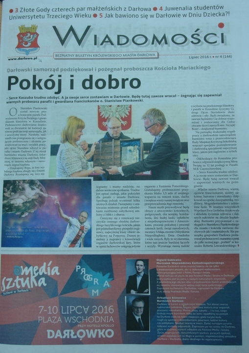 Informujemy, że od dziś (04.07) do nabycia jest kolejne (nr 4), bezpłatne wydanie biuletynu Wiadomości Darłowskch (4/144).