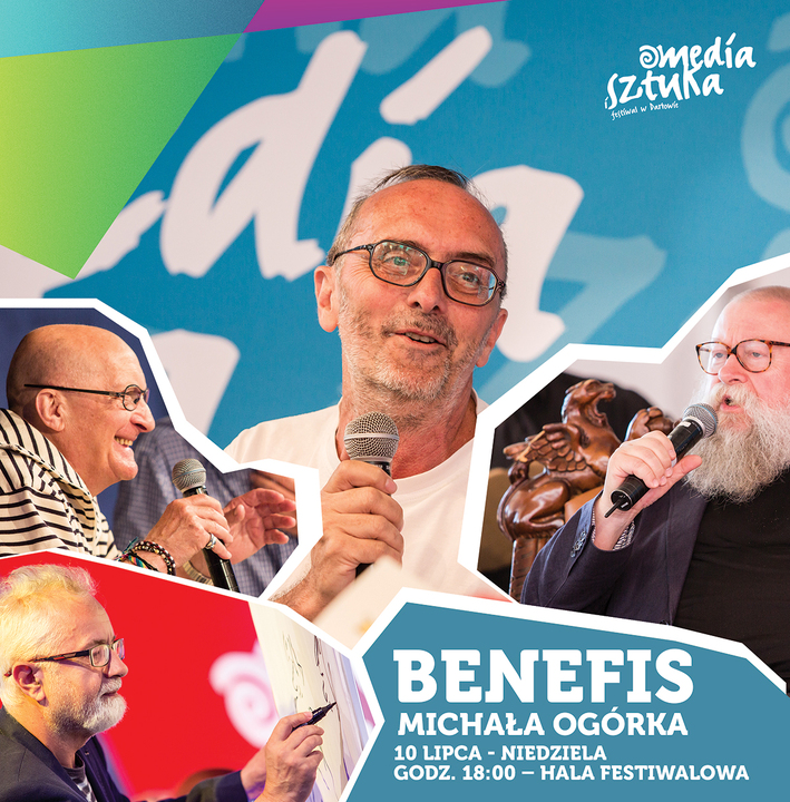 W niedzielę 10 lipca, w ostatni dzień Festiwalu Media i Sztuka zapraszamy serdecznie na benefis Michała Ogórka, z udziałem językoznawcy prof. Jerzego Bralczyka, aktora Wojciecha Pszoniaka, rysownika i satyryka Henryka Sawki, Jakuba Kuronia. Podczas benefisu zaśpiewa Magdalena Smalara. Początek benefisu o godz. 18:00, w Hali Festiwalowej, w Darłówku Wschodnim, przy Hotelu Apollo.