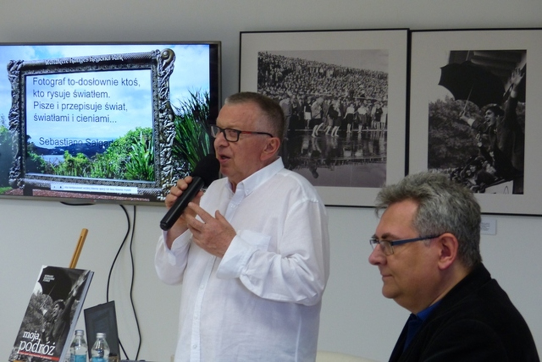 Edward Grzegorz Funke doktor nauk technicznych, podróżnik, członek Związku Polskich Artystów Fotografików oraz członek rzeczywisty Fotoklubu Rzeczypospolitej Polskiej, założyciel Bałtyckiej Szkoły Fotografii urodził się w Świsłoczy w czasach II RP należącej do województwa białostockiego (obecnie obwód grodzieński w Białorusi). Zaraz po wojnie przybył z rodzicami na Pomorze. Fotografią interesował się już od szkoły podstawowej. Rok 1965 był początkiem jego współpracy z agendami informacyjnymi Politechniki Gdańskiej. Od 1969 r. członek koszalińskiego Towarzystwa Fotograficznego. W latach 1970 -1990 nauczyciel akademicki w WSI w Koszalinie. Z aparatem fotograficznym wraz z małżonką Krystyną odwiedził sześć kontynentów. Jego fotogramy pojawiły się na ponad 120 wystawach indywidualnych i zbiorowych. Spotkanie z artystą poprowadził Andrzej Mielcarek. Na miejscu można było nabyć album p.t. "Moja podróż", w którym prezentuje „Portret Świata”. Na wystawie można obejrzeć portrety Czesława Niemena, Stana Borysa czy Charlesa de Gaull'a w Gdańsku w czasie jego historycznej wizyty w Polsce. Przede wszystkim jednak trzeba obejrzeć znakomite, artystyczne kolorowe zdjęcia malowane obiektywem Grzegorza Funkę z różnych stron świata.L. Walkiewicz