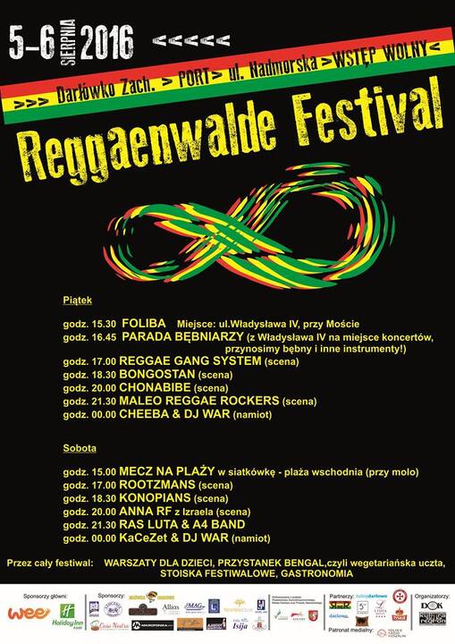 Oficjalne otwarcie festiwalu odbędzie się w piątek, 5 sierpnia 2016 o godz. 15:30, koncertem ulicznym przy moście, ul. Władysława IV. Zagra - FOLIBA, a po koncercie nastąpi tradycyjna parada bębniarzy do Festiwalowego miasteczka. Od godz. 17:00 na Scenie Głównej, w porcie, w Darłówku Zachodnim (Róża Wiatrów) zagra: REGGAE GANG SYSTEM.