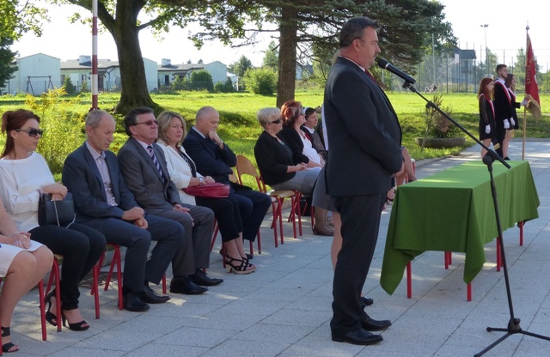 Dyrektor Zespołu Szkól Bogdan Herbeć serdecznie powitał wszystkich przybyłych, a szczególnie tych rozpoczynających naukę w Liceum, Technikum i ZSZ. Życzył młodzieży osiągnięcia założonych celów i dobrej współpracy z gronem pedagogicznym. Wrzesień kojarzy się wszystkim z zakończeniem wakacji, rozpoczęciem roku szkolnego. Nie zawsze jednak tak było. Nie możemy zapomnieć, co wydarzyło się 1 września 1939 roku, kiedy to Niemcy napadli na Polskę i rozpoczęli II wojnę światową podkreślił w swoim wystąpieniu dyrektor Zespołu Szkół. Dyrektor dodał, że w dniach 15-16 października 2016 Zespół Szkół im. Stefana Żeromskiego w Darłowie obchodził będzie jubileusz sześćdziesięciolecia szkoły. Z tej okazji zostanie wydana okolicznościowa publikacja.