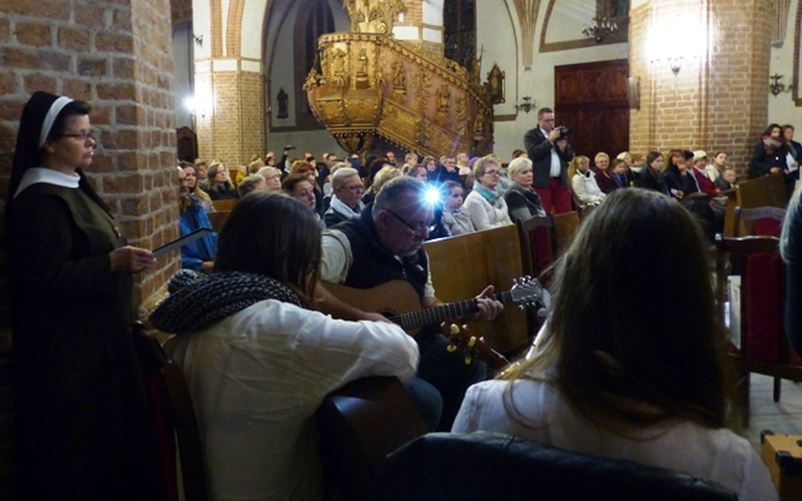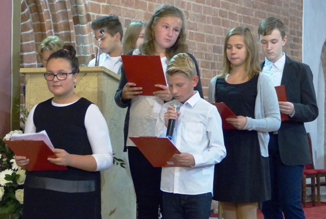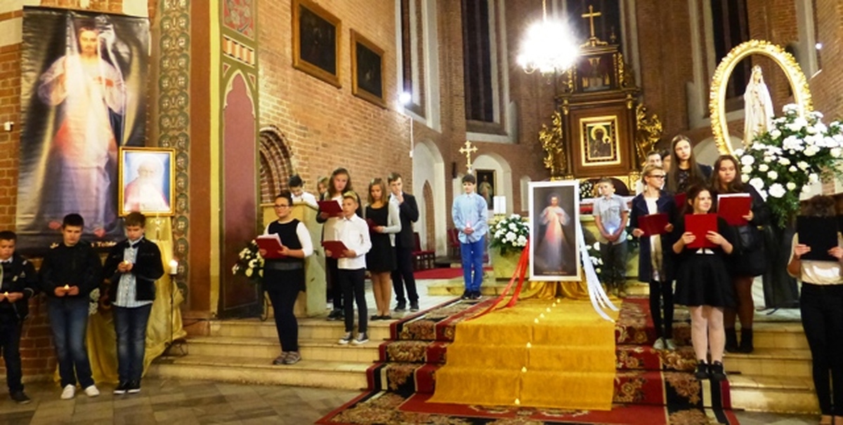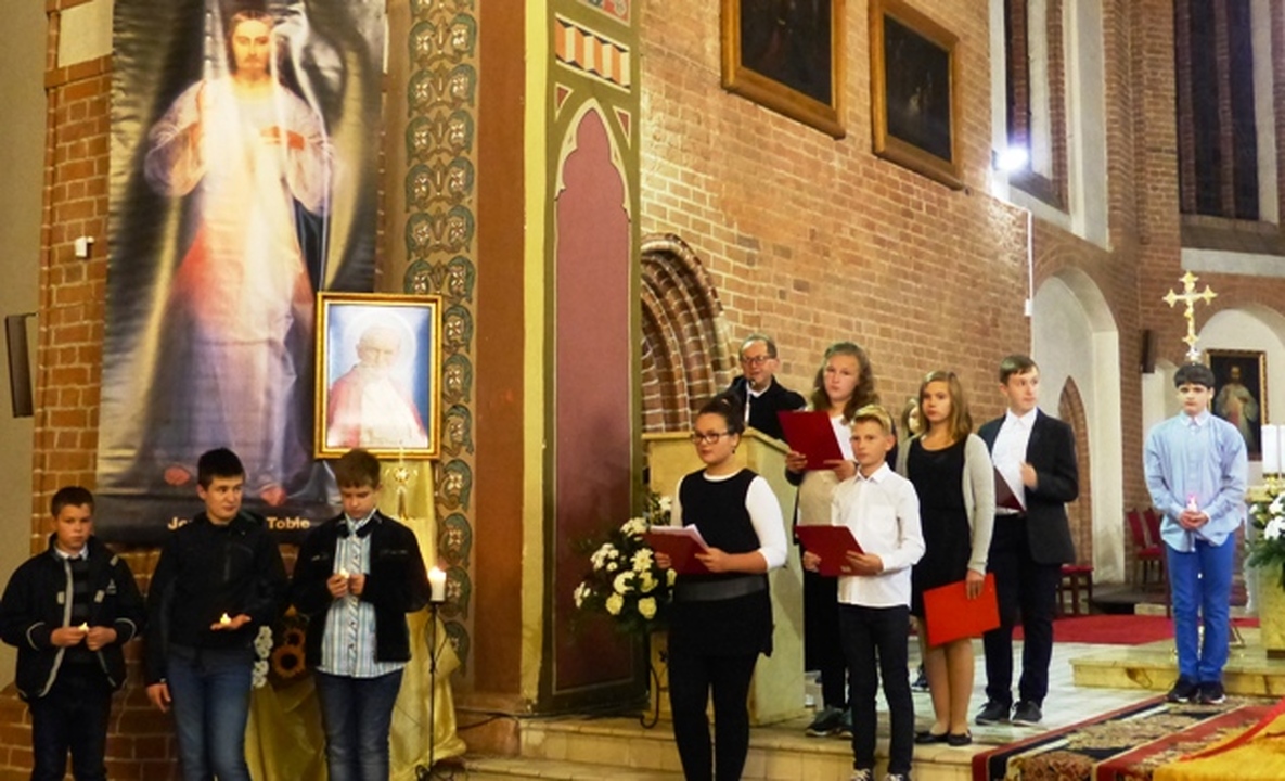 Szesnasty Dzień Papieski w Darłowie był okazją do muzyczno - literackiego wspomnienia o św. Janie Pawle II. Uczniowie Miejskiego Gimnazjum im. S. Dulewicza z klasy 1 c wraz z zespołem wokalno - instrumentalnym "Cantabile" przygotowali refleksyjny występ dla mieszkańców Darłowa, rodziców oraz nauczycieli. Motywem przewodnim był tytuł przedstawienia "Bądźcie świadkami miłosierdzia". Wybrane przez s. Marię Majkowską i Małgorzatę Brzozowską teksty pochodziły z przemówień i kazań papieża oraz były przeplatane wierszami religijnymi. Pieśni i psalmy w wykonaniu zespołu pod kierownictwem Krystyny Leśniewskiej i Artura Hamerlinga wprowadziły słuchaczy w podniosły nastrój. Pamiętajmy, że św. Jan Paweł II lubił młodzież, ich radość i spontaniczność, dlatego też zespół wykonał współczesny utwór „Lolek- Nie ma lepszego od Jana Pawła II-go!”. Zgromadzeni licznie w kościele wierni, dyrekcja i nauczyciele gimnazjum podziękowali młodym wykonawcom gorącymi oklaskami, a ksiądz proboszcz udzielił specjalnego błogosławieństwa relikwiami św. Jana Pawła II.