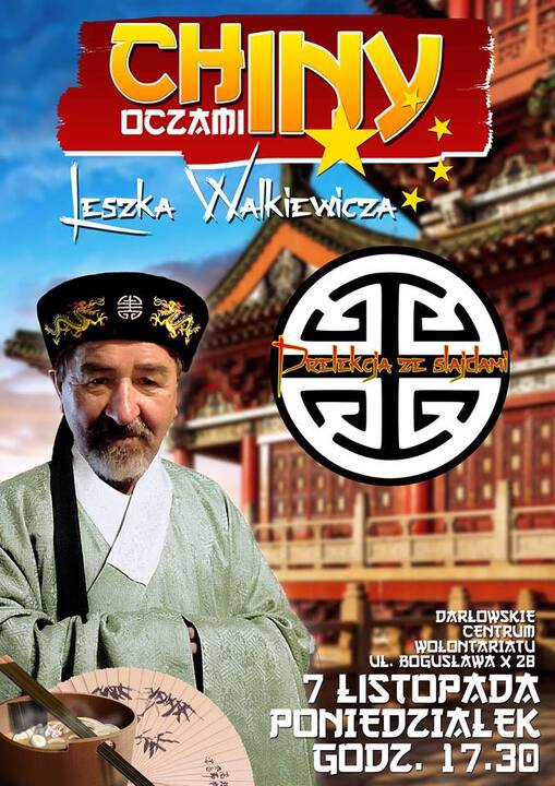 Dzisiaj, w poniedziałek 7 listopada zapraszamy na prelekcję pt "Chiny oczami Leszka Walkiewicza". To pierwsza część cyklu opowieści darłowskiego podróżnika, który tym razem wybrał się na daleki wschód. Spotkanie poświęcone Chinom odbędzie się o godz. 17.30 w siedzibie Darłowskiego Centrum Wolontariatu (ul. Bogusława X 28 - Dworzec PKP).
