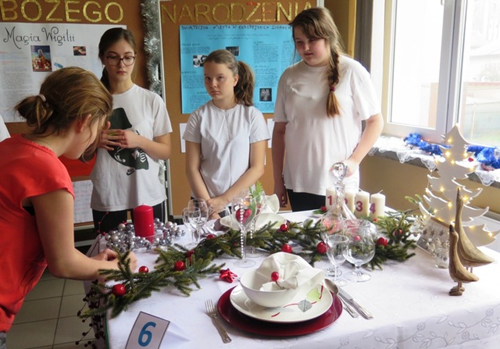 Pokaz stołów wigilijnych w Miejskim Gimnazjum