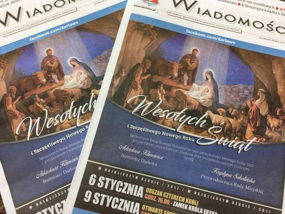 Od dzisiaj w stałych punktach, można już nabyć bezpłatne, świąteczne i ostatnie w tym roku wydanie Wiadomości Darłowskich. Numer będzie dostępny również podczas jutrzejszego wieczoru (przed) wigilijnego w hali darłowskiego LO.
