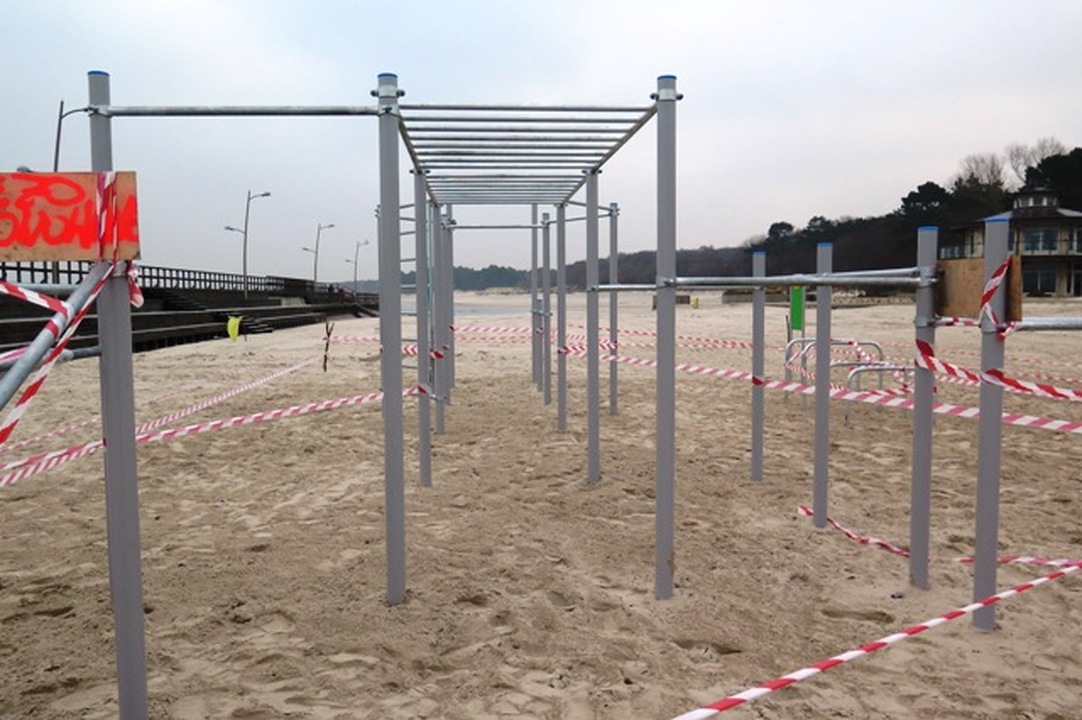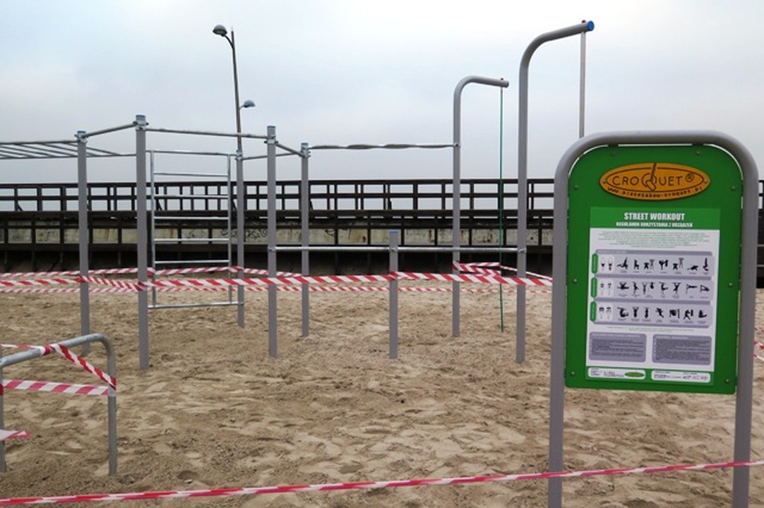 W Darłówku wschodnim na plaży pomiędzy hotelem Apollo a promenadą na falochronie urządzono Street Workout Park.