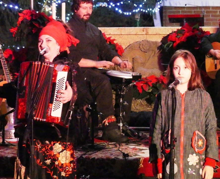 Dikanda  to słowo, które oznacza rodzinę w jednym z języków afrykańskich. Zespół powstał 10 lat temu w Szczecinie.  Grają i śpiewają muzykę folkową inspirując się twórczością ludową wielu krajów, w tym bałkańską, izraelską, cygańską, białoruską, a nawet dalekim Kurdystanem i Indiami.  W Darłowie zespół koncertował kilkukrotnie. Tym razem był to unikalny i niepowtarzalny koncert kolęd.  Dikanda to uznany szczególnie na zagranicznym rynku muzycznym szczeciński zespół grający gatunek tzw. world music. W swojej twórczości Dikanda stawia na autentyczność stylu – większość utworów jest ich oryginalnymi kompozycjami. Dikanda ma w swoim dorobku 7 płyt – w tym DVD Live nagrywane w zakopiańskim Teatrze Witkacego, setki koncertów (głównie w Niemczech, Austrii i Szwajcarii, ale również w Rosji, Indiach oraz w USA).   Artyści zdobyli szereg ważnych nagród: w tym „Płyta roku” niemieckiego czasopisma „Folker” przyznana w 2005 roku za „Usztijo”, I nagroda na Festiwalu Muzyki Folkowej Polskiego Radia Nowa Tradycja w 1999,  I nagroda na Festiwalu Eurofolk 1999  i inne. Zespół koncertuje w składzie: Ania Witczak – śpiew, akordeon, Daniel Kaczmarczyk – instrumenty perkusyjne, Piotr Rejdak – gitary, Grzegorz Kolbrecki – kontrabas, Kasia Bogusz – śpiew, Szymon Bobrowski – trąbka, Andrzej Fiś Jarząbek – skrzypce, śpiew (nieobecny w Darłowie). Muzycy i wokaliści od początku nawiązali bezpośredni żywiołowy kontakt z licznie przybyłą darłowską publicznością i w dużej części było to wspólne śpiewanie kolęd. Piękna muzyka, energia, radość grania i śpiewania to cechy tego wspaniałego zespołu. Po koncercie Proboszcz Parafii i Gwardian Klasztoru Franciszkanów o. Wiesław Przybysz pobłogosławił artystów Dikandy  i wszystkich przybyłych.  Organizatorem tej muzycznej uczty był dyrektor Darłowskiego  Ośrodka  Kultury im. L. Tyrmanda  Arkadiusz Sip.