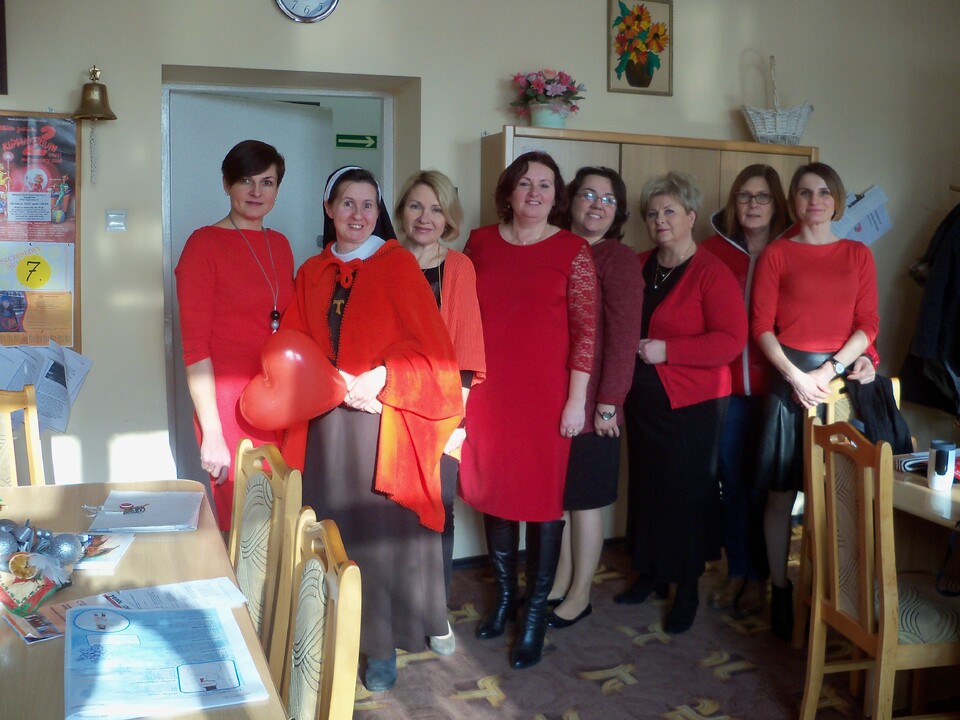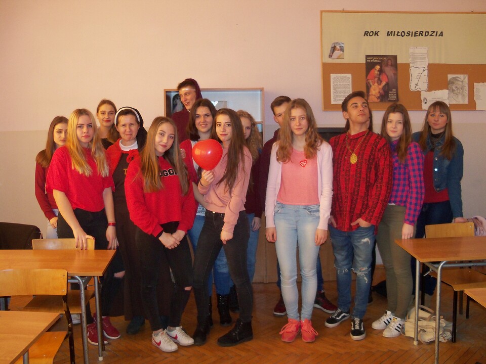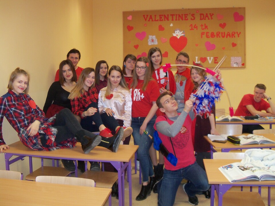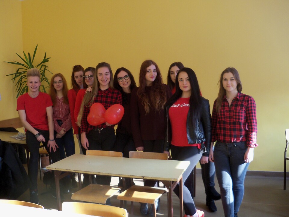 Głównym punktem programu był konkurs na przebranie walentynkowe, czyli strój w kolorze miłości- czerwieni- w którym wzięli udział wszyscy uczniowie . Nasi nauczyciele również „ poczerwienieli” i choć w konkursie nie wzięli udziału to prezentowali się fantastycznie !