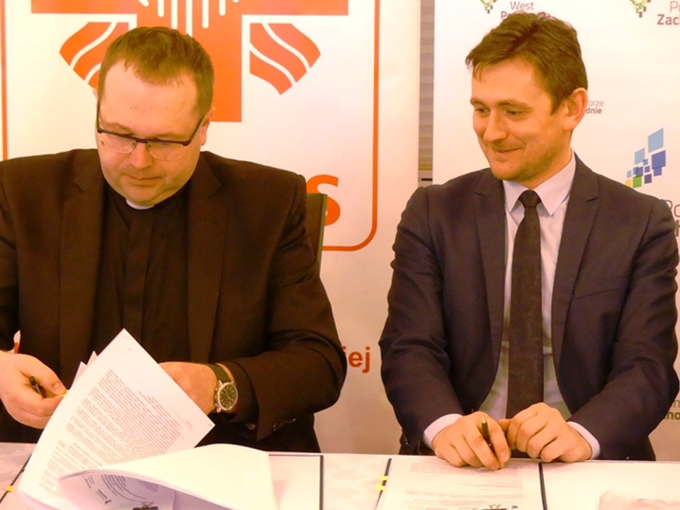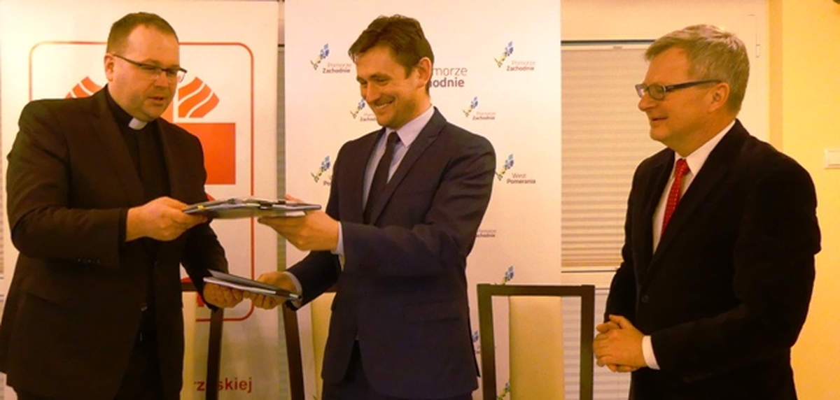 W siedzibie Domu Opiekuńczo-Hospicyjnego CARITAS w Darłowie im. bp. Czesława Domina w obecności burmistrza Darłowa – Arkadiusza Klimowicza i dyrektora hospicjum ks. Krzysztofa Sendeckiego, wicemarszałek woj. Zachodniopomorskiego Tomasz Sobieraj podpisał 24 lutego 2017 umowę z dyrektorem diecezjalnego Caritas ks Tomaszem Rodą w sprawie dofinansowania rozbudowy miejscowego hospicjum.