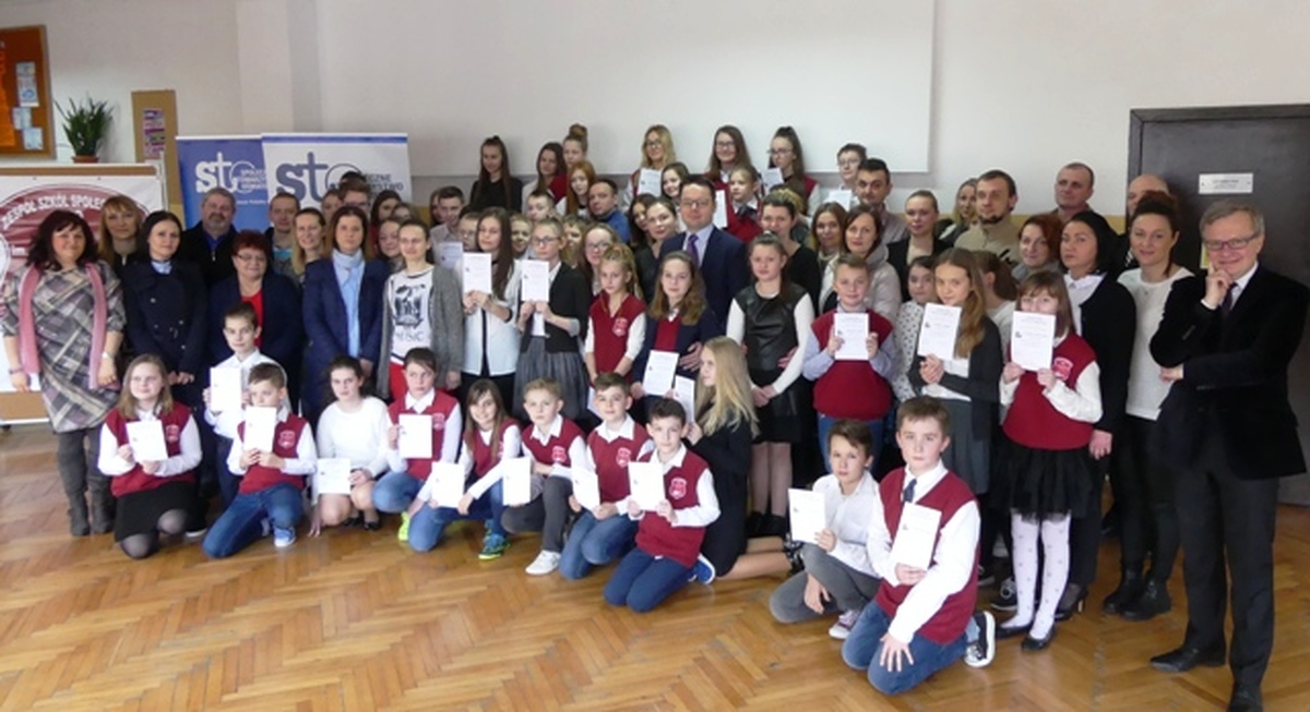 W Zespole Szkół Społecznych im. Lotników Morskich w Darłowie 1 marca 2017 Arkadiusz Klimowicz – burmistrz Darłowa w towarzystwie dyrektorki ZSS Joanny Tarkowskiej na uroczystym spotkaniu z uczniami i rodzicami wręczył 56 stypendiów, w tym 36 dla najlepszych uczniów SP i 20 dla gimnazjalistów.