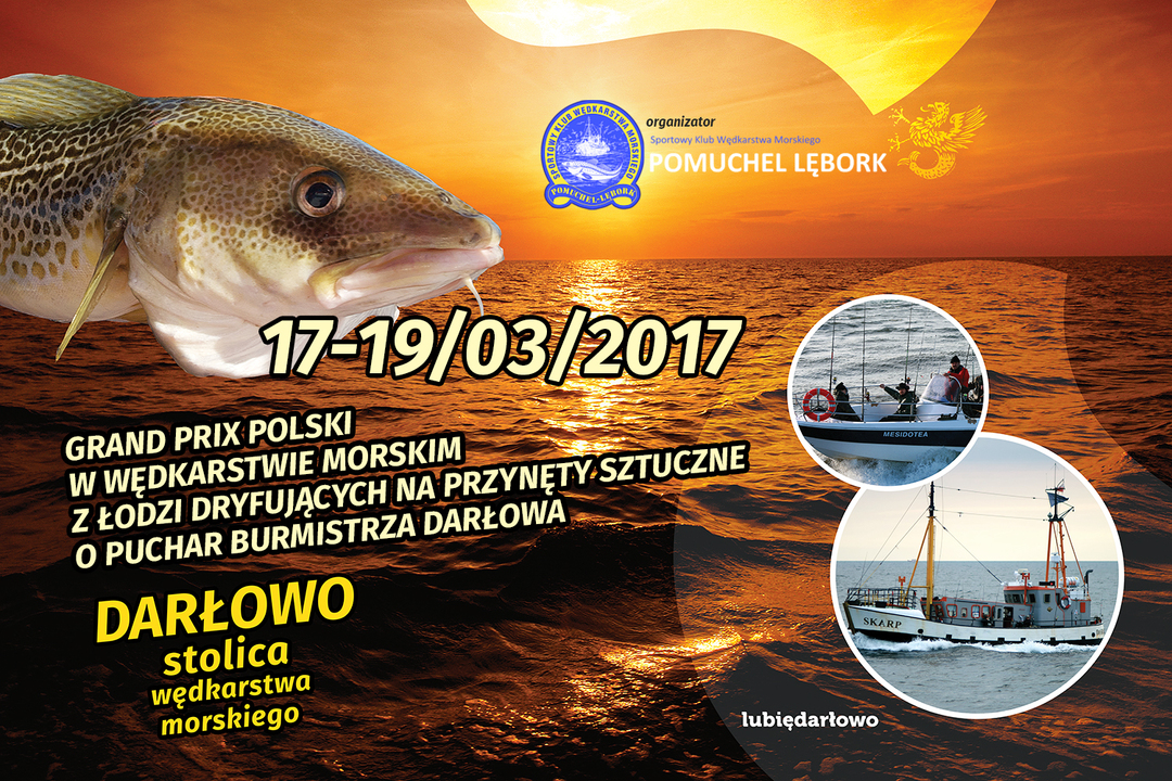 W najbliższy weekend tj. 17 - 19 marca 2017 w darłowskim porcie odbędą się zawody wędkarskie pod nazwą GRAND PRIX POLSKI W WĘDKARSTWIE MORSKIM Z ŁODZI DRYFUJĄCYCH NA PRZYNĘTY SZTUCZNE O PUCHAR BURMISTRZA DARŁOWA.