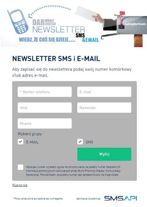 W marcu bieżącego roku oddaliśmy do Państwa użytku, unowocześnioną wersję darłowskiego newslettera SMS i e-mail. Jest to technicznie najlepsze rozwiązanie na rynku (dostarczane przez firmę SMSAPI), bo pozwala osobie administrującej newsletter, wysyłać wiadomości z zaplanowanym terminem dostarczenia wiadomości, oraz dostarczania wiadomości zgodnych z najnowszymi trendami i technologiami smartphone.