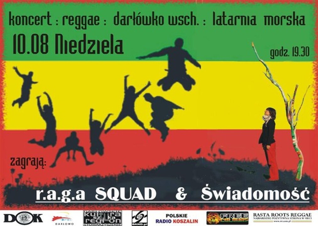 Darłówko – pomorska stolica reggae. Już drugi raz w tym sezonie wakacyjnym Darłówko będzie gościć kolejny zespół reprezentujący gatunek muzyczny jakim jest reggae. Obok darłowskiego zespołu „Świadomość” zagra „R.a.g.a. Squad” z Dębna. Przy okazji III AntiBabilon Fest, który miał miejsce w lipcu tego roku przedstawiliśmy państwu grające na koncercie zespoły TABU i ŚWIADOMOŚĆ. Tym razem zachęcamy do zapoznania się z zespołem, który wystąpi 10 sierpnia w Darłówku.