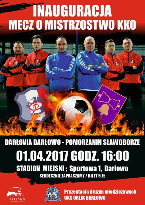 MKS Darłovia Darłowo zaprasza na inaugurację i mecz o mistrzostwo KKO: Darłovia Darłowo vs Pomorzanin Sławoborze. Ponadto podczas wydarzenia zaprezentowane zostaną drużyny młodzieżowe UKS Orlik Darłowo. A wszystko to 1 kwietnia 2017 na Miejskim Stadionie w Darłowie, przy ul. Sportowej 1.