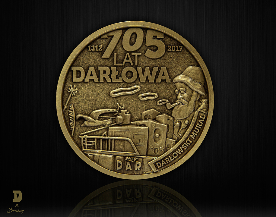 Prototyp awersu zaprojektował Daniel Frącz, który przypomnijmy był pomysłodawcą darłowskiego murala, który otrzymał poparcie społeczne w otwartym głosowaniu, uzyskując blisko 800 głosów na TAK dla realizacji projektu w ramach Projektu Budżetu Obywatelskiego Miasta Darłowa w roku 2016.