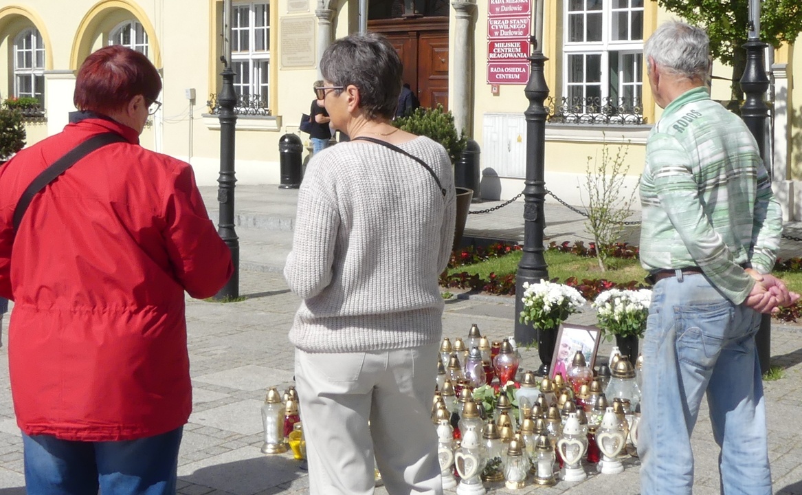 Na zdjęciu W ten sposób mieszkańcy Darłowa oddają hołd tragicznie zmarłej parze.