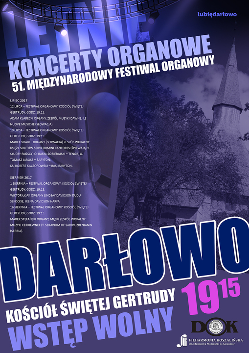 Od lat Darłowo jest jednym z miast gdzie odbywa się ten wyjątkowy w skali światowej festiwal muzyki organowej. Jego organizatorem jest Filharmonia Koszalińska oraz Darłowski Ośrodek Kultury, które w tym roku zarówno turystów wypoczywających nad morzem jaki i mieszkańców Darłowa i okolic zapraszają na cztery koncerty, które odbędą się tego lata w Kościele Świętej Gertrudy w Darłowie.