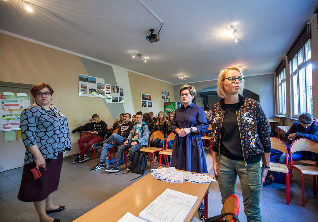 Na zdjęciach: prelekcje na temat budżetu obywatelskiego w Zespole Szkół im. St. Żeromskiego